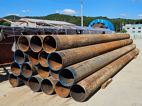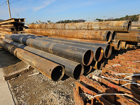 강관파일 또는 강관말뚝이라 칭하며 강철로 만든 말뚝으로 건물,교량,항만, 하천구조물 등의 기초공사에 사용되는 철강재로 주로 건축·기계 옹벽기초, 항만·하천 및 구조물의 기초, 교량의 교각기초, 토사방지· 산 사태방지용으로 사용됩니다.